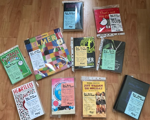 I had a few books ranging from pre-school to YA and decided to give them away as they were going to go to a charity shop anyway!